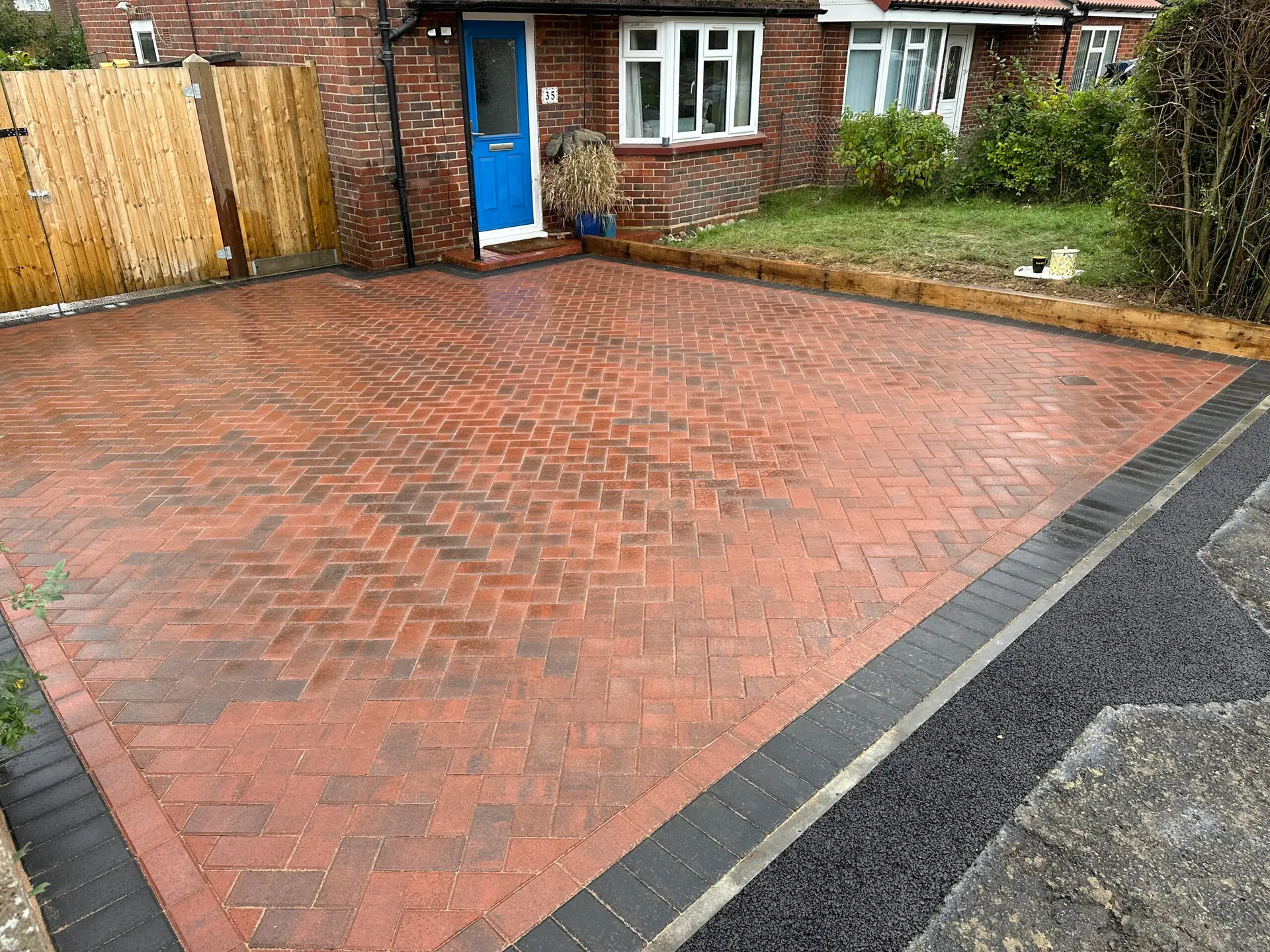 The process of doing a driveway is quite simple but that doesn’t mean it doesn’t require much skill. The first thing we do is get rid of whatever existing pavement is in the area of where the driveway is going to be laid. We then dig the whole area up to one foot depending on how much it needs to be dug. After that, we will lay Type 1 Base to create a levelled out bed for the sand and the blocks to go in. After the Type 1 Base is laid and whacked with a Wacker Plate, we lay a membrane sheet to prevent the weed from growing through the pavement. After the membrane is laid, we will lay sharp sand to create the final base for the blocks to go in. Levelling is one of the most crucial parts of a paving job which is why we make sure that only the most experienced workers take this job on. After the sand is laid, it will be levelled out perfectly and made ready for the blocks to go in. After all the blocks are laid, we will fill all the gaps between the blocks with Dry Paving Sand. To make sure that the driveway is well neat and kept together, we will whack it down again with the wacker plate and we will add more paving sand to make sure the gaps are properly filled. After that point, we will clean the place up and the job is finished.